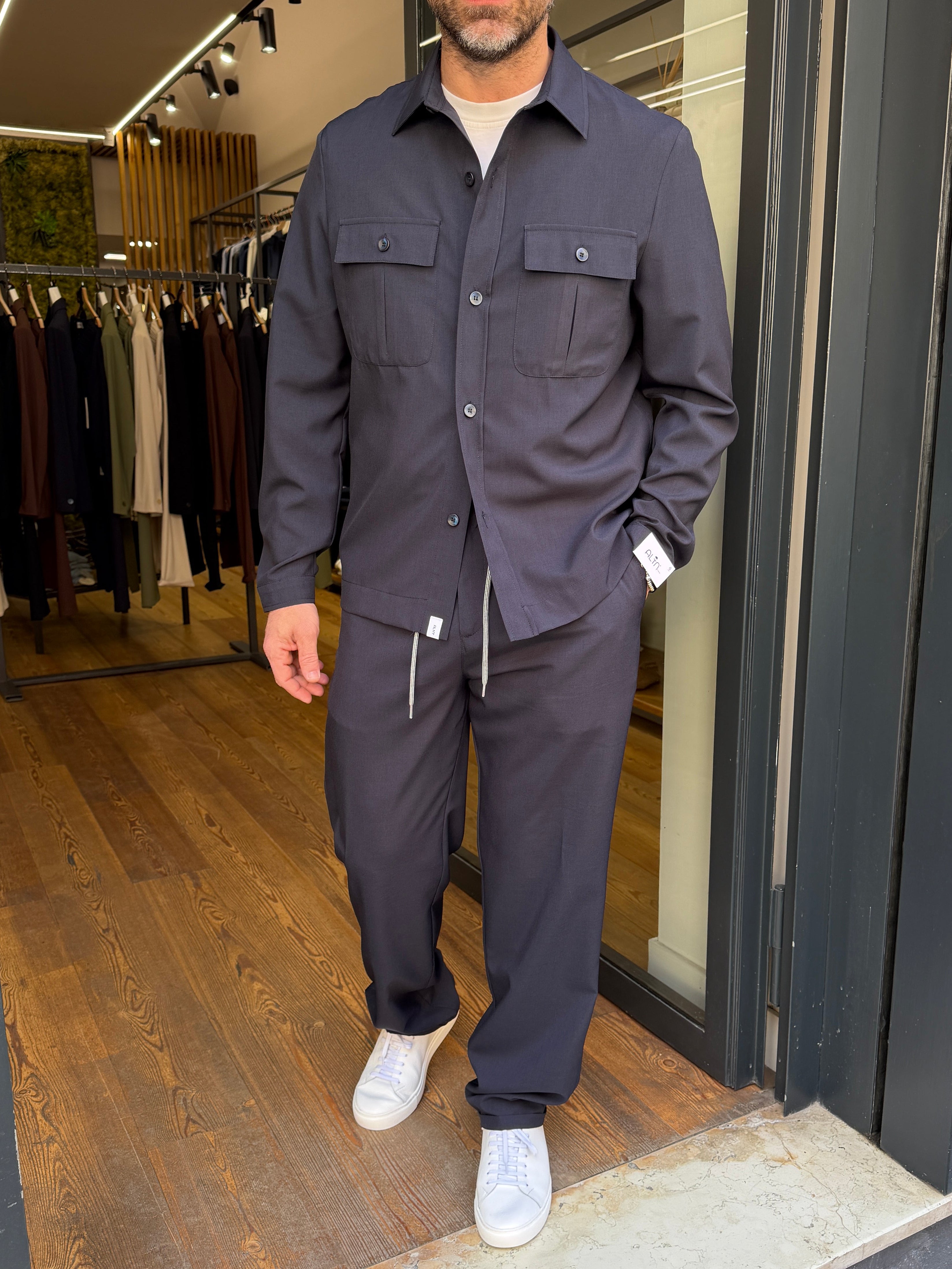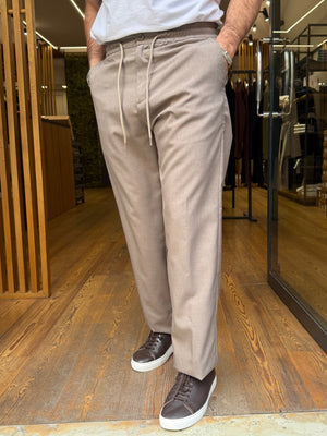 La chiusura con bottone e zip assicura praticità e una vestibilità stabile, mentre la gamba dalla linea comoda scende morbida senza risultare eccessivamente ampia. Il piccolo risvolto sul fondo aggiunge un dettaglio curato e moderno, perfetto per valorizzare la silhouette.