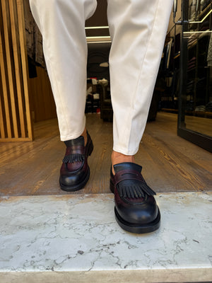 Questi mocassini in pelle presentano un design raffinato e rilassato, presa da una punta a mandorla e da cuciture minime per una finitura pulita. La silhouette moderna si adatta comodamente al tuo piede, rendendoli adatti a varie occasioni, mentre migliorano il tuo stile con semplicità. Il design classico assicura versatilità nel guardaroba maschile. Differente dai soliti mocassini , per le frange e il doppio colore.