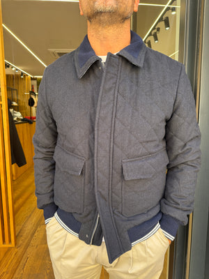 Tap modello bomber, con colletto , bordo in maglia a costine. Grandi tasche a toppa con patta . Chiusura con zip con doppio cursore e bottoni a pressione. Realizzato in una fodera all'interno a fantasia, mentre esternamente e caratterizzato da quadretti.