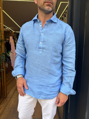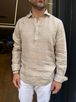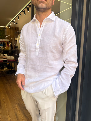 Camicia Mastricamiciai da uomo, un capo artigianale realizzato con il più pregiato lino. Caratterizzata dal classico collo italiano modello LUCA, modello polo, chiusura a metà con bottoni, e maniche lunghe, questa camicia si distingue per l'attenzione ai dettagli: l'asola sul collo è ricamata a mano e le cuciture sono eseguite con maestria ad un ago. Ideale per le giornate più calde, questa camicia si presta a molteplici abbinamenti: perfetta sia con pantaloni in cotone che con jeans. Disponibile in una selezione di colori raffinati è un'eccellente scelta per un look fresco e sofisticato.