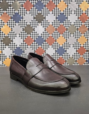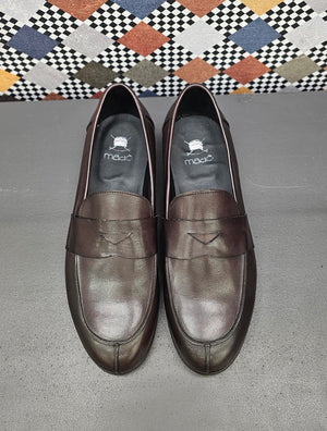 Mocassino in pelle delegato, con suola in cuoio e antiscivolo. Scarpe artigianali