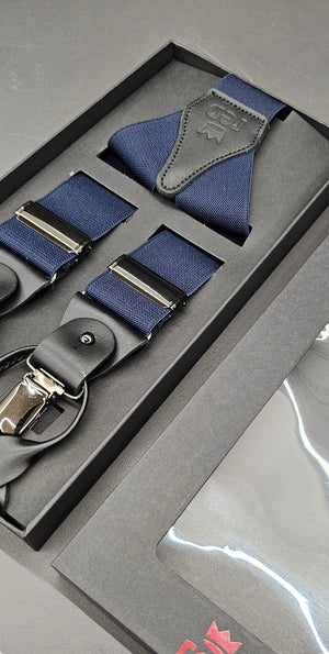Bretelle elastiche effetto a Y doppio uso in elastico di alta qualità, con finiture in vera pelle.