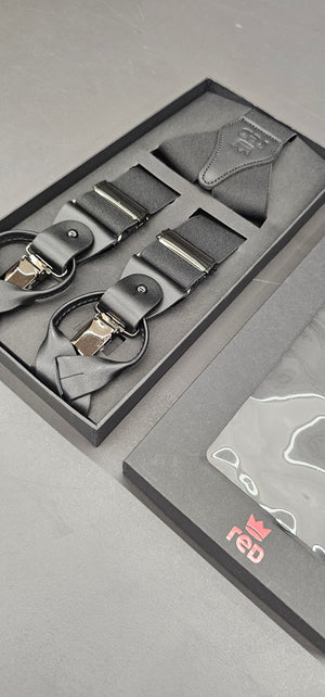 Queste bretelle sono doppio uso: possono essere usate sia con le clip che con le asole in pelle.