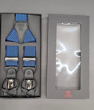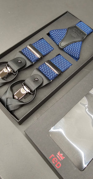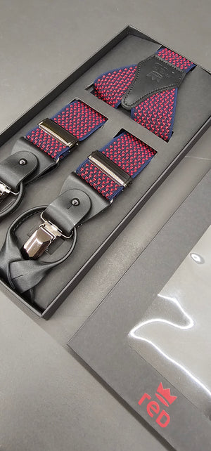 Bretelle elastiche con fantasia a Y doppio uso in elastico di alta qualità, con finiture in vera pelle.
