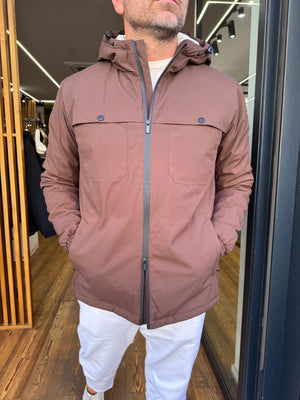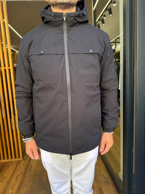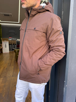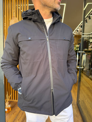 Giubbotto in tessuto tecnico impermeabile, imbottito e trapuntato all'interno. Resistente al freddo, cappuccio fisso, chiusura anteriore con zip termosaldata a vista. Ideale per tutti i look in stile casual o sportivi.