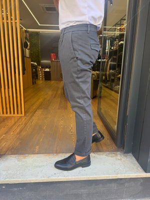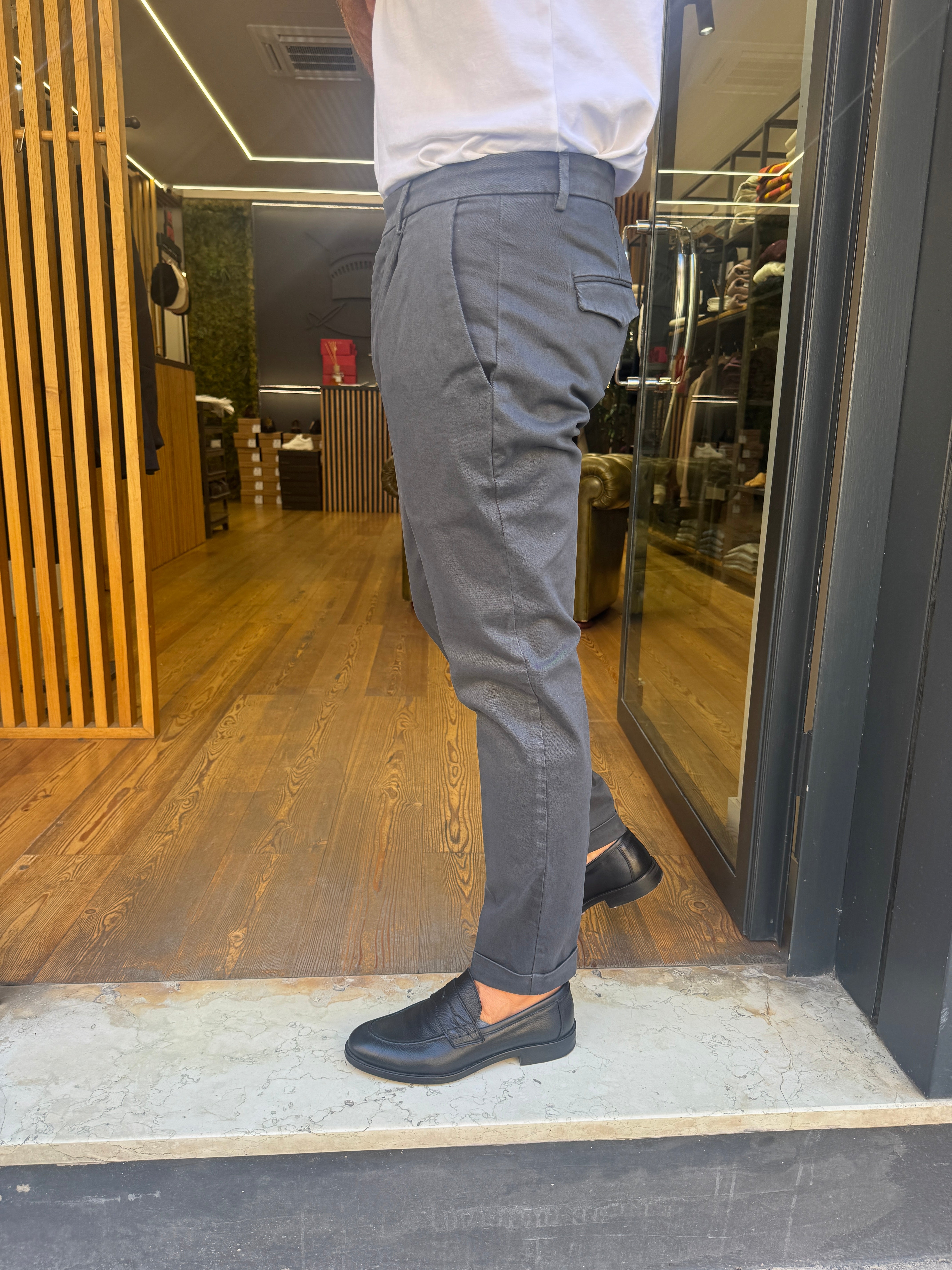 Questi pantaloni con pince frontali esaltano una texture morbida in gambardine per un comfort impeccabile ed una vestibilità sempre perfetta. Ideali per un look che vada bene in ufficio oppure per un look serale casual chic. Presentano una chiusura con zip nascosta da patta e cinta allungata con bottone, tasche a filo laterali e due con pattine sul dietro, risvolti sul fondo gamba.