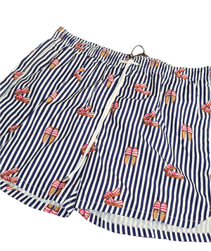 Freschi e leggeri, sono perfetti per le tue giornate al mare o in piscina, si asciugheranno in pochi secondi. Fondo bianco e fantasia rosa e azzurro.