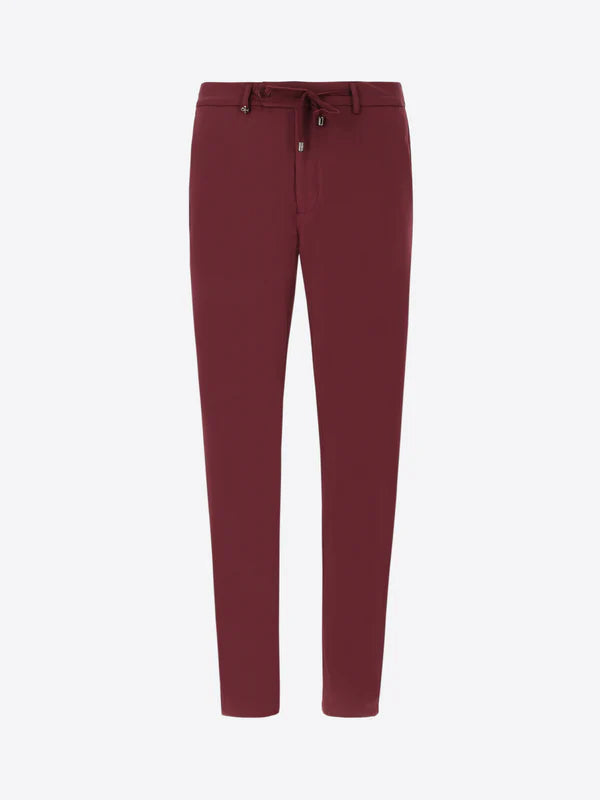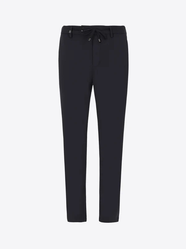 Pantalone regular fit realizzato in tessuto tecnico super stretch “HP High Perform”, che garantisce alte performance in termini di elasticità e comfort. Il capo presenta tasche frontali alla francese, tasche posteriori a filetto con bottone e una coulisse in vita.