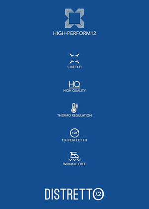 Il tessuto tecnico HIGH-PERFORM12 si declina in due varianti stagionali distinte, ciascuna progettata per offrire prestazioni specifiche, garantisce una vestibilità perfetta per ogni attività. Questo tessuto all'avanguardia offre traspirabilità ed estrema libertà di movimento, adattandosi al tuo stile di vita dinamico.