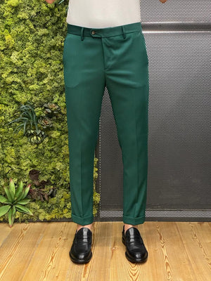 Questi pantaloni sono confezionati con chiusura con zip nascosta da patta e con bottone. Due tasche a filo laterali, due a doppio filetto con bottone sul dietro ed un taschino porta moneta.