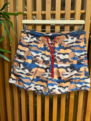Per chi ama distinguersi anche sotto il sole, senza rinunciare a uno stile deciso e contemporaneo. Il classico motivo camouflage si reinventa con un twist moderno, tra contrasti dinamici e sfumature ricercate che donano profondità e carattere al capo. Un pattern all-over pensato per chi vuole un look grintoso ma sempre curato nei dettagli.